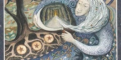The word Samhain is pronounced Sow(as in Cow)Inn, and is sometimes written in the Old Scottish Gaelic form as ‘Samhuinn’. It is said that at this special time of Samhain the veil that separates the worlds is at its thinnest. So our world, the world of Faerie, and that of the dead, blend as one. It is no wonder then that this night has become so wrapped in superstition. It is a night of wonder and magic. On this night the Cailleach (the Crone) comes to strip the leaves from the trees, to quicken the decay of the flesh of the year, so that it may feed the new life to come. We can also ask Her to take the unwanted aspects of our personal year away, so that these too might be transformed. Yet even on the darkest night of Samhain, whilst our minds ponder our mortality, if we listen carefully, we can hear the sound of a new-born child crying for its Mother’s breast, for soon it will be Alban Arthan, the Winter solstice, and the Wheel will turn once more."
